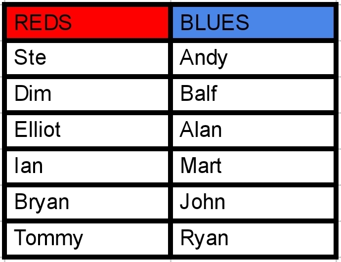 Both teams had clearly set tactics for their teams. The Blues put 6 men behind the ball when out of possession and were relying on clinical finishing to get a result. The Reds had targeted Balf as the danger man and Ian had the job of man marking him all game. They were hoping the pace of Elliot and Dim would win them the game.