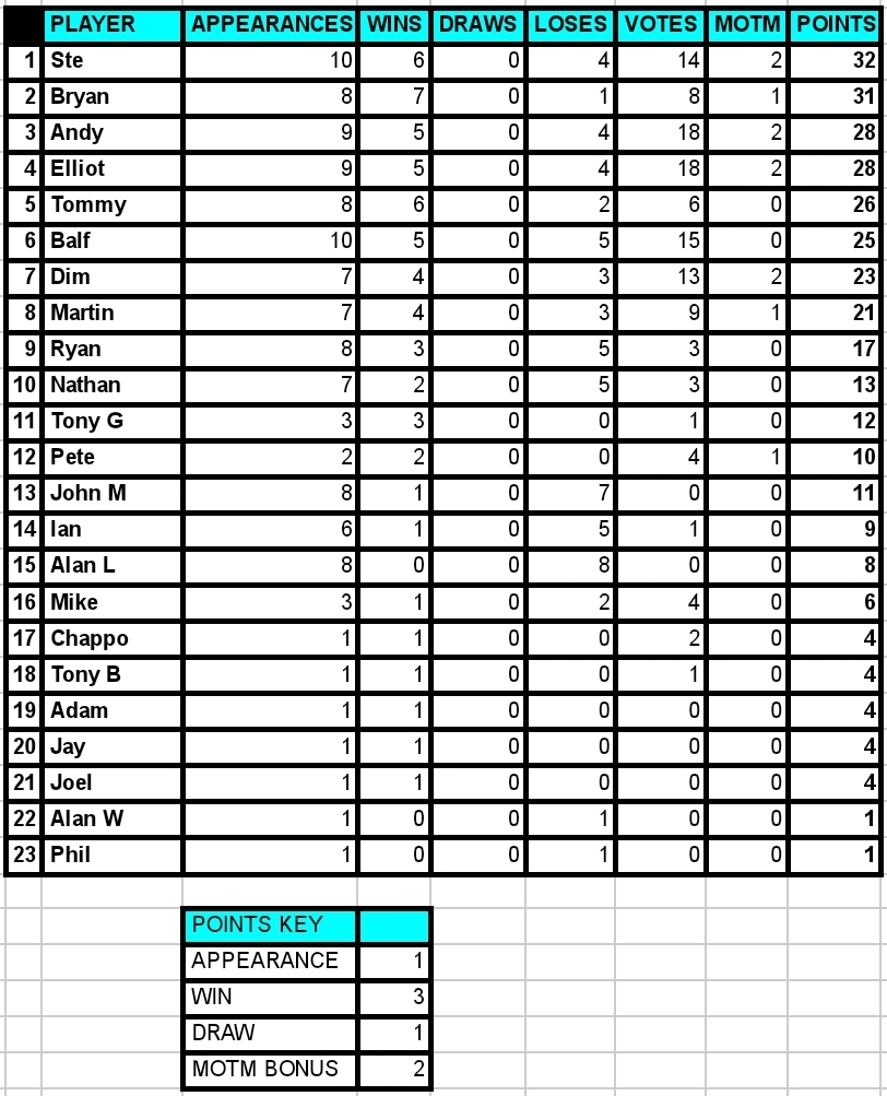 Ste takes the title with an end of season charge and pips Bryan by 1 point! π Andy, Bryan and El have had good seasons but just fall short, they live to fight another day! π
