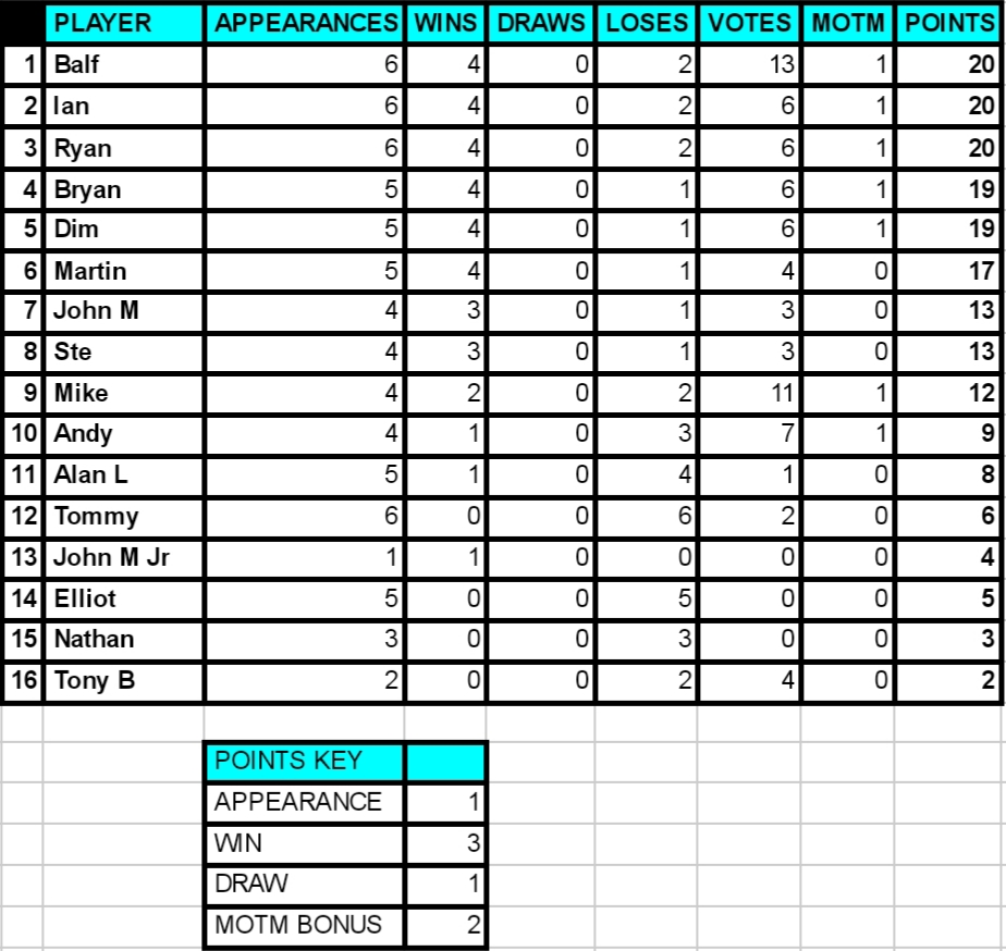 With 5 votes each Bryan and Andy are this weeks MOTM.